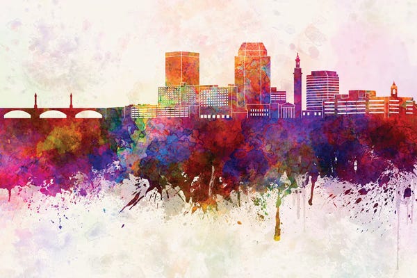Springfield Ma Skyline In Watercolor Background