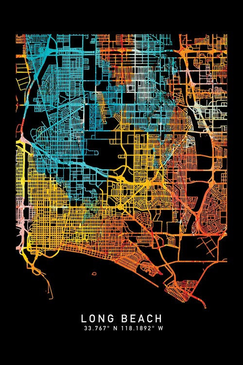 Long Beach, CA, City Map, Shade Of Orange
