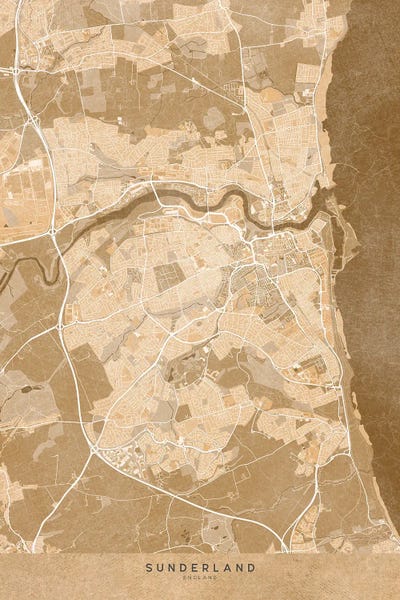 Map Of Sunderland (England) In Sepia Vintage Style