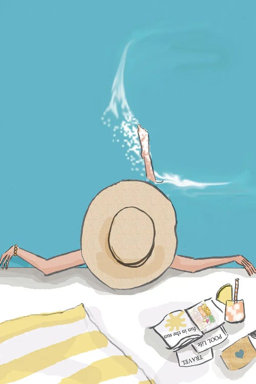 Summer On My Mind, Tropical Travel Swimming Pool Fashion Illustration, Eclectic Beachy Summer Bikini