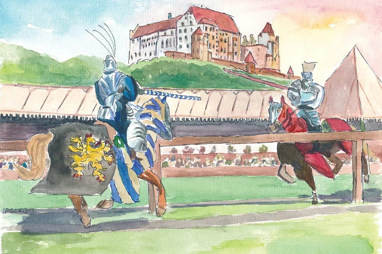 Landshut Knight Tournament In Front Of Historical Scenery With Trausnitz Castle
