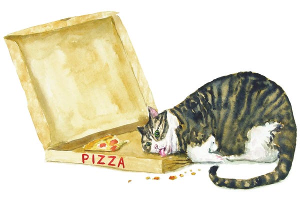 Fat Tabby Cat And Pizza