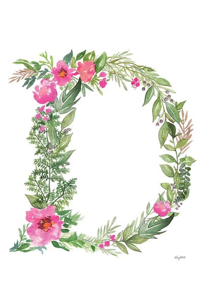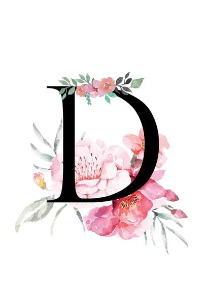'D' Initial Monogram With Watercolor Flowers