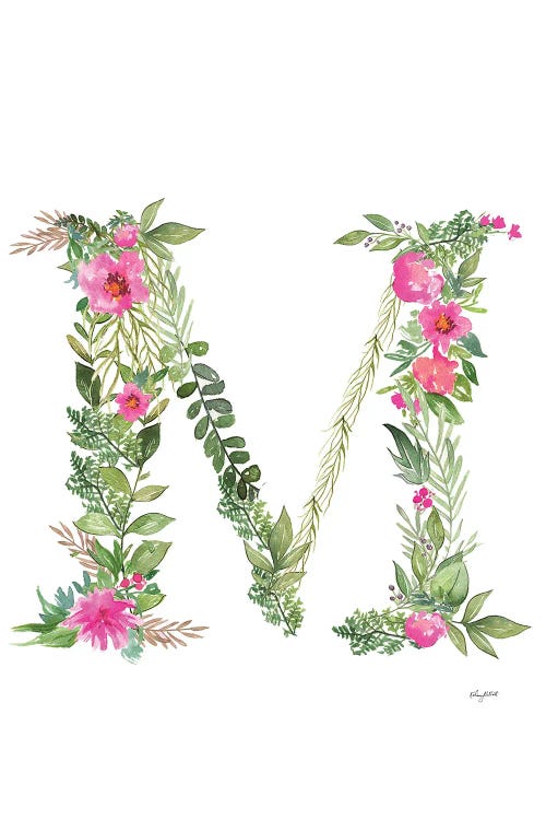 'M' Initial Monogram With Watercolor Flowers