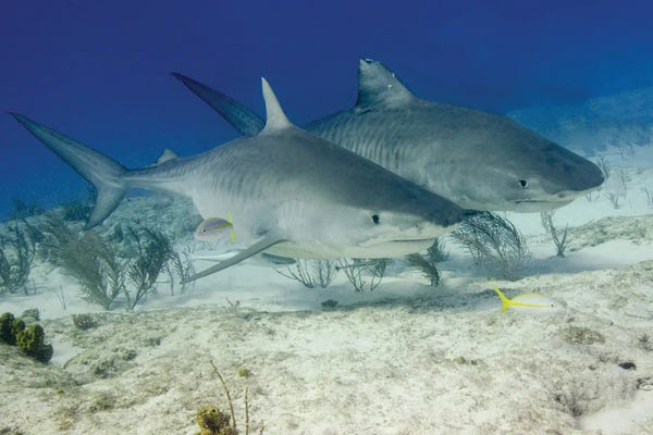 Pair Of Tiger Sharks, Tiger Beach, Bahamas