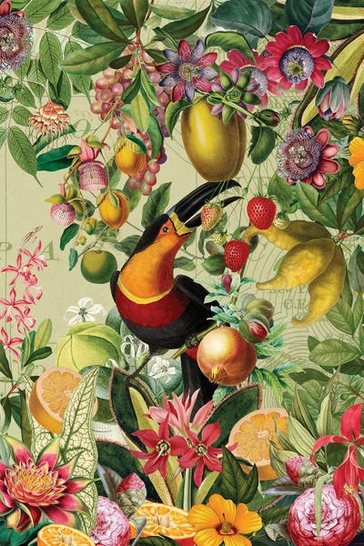 Vintage Toucan In Vintage Fruit And Flower Jungle