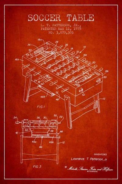 Soccer Table Red Patent Blueprint