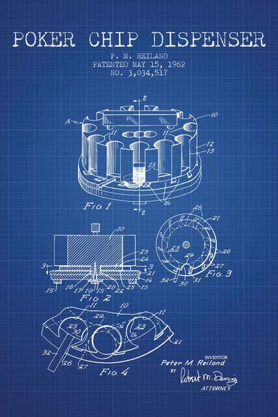P.M. Reiland Poker Chip Dispenser Patent Sketch (Blue Grid)