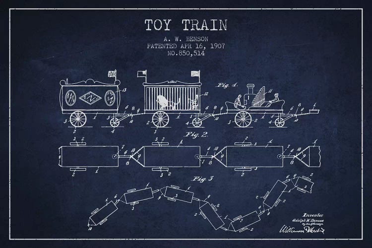 A.W. Benson Toy Train Patent Sketch (Navy Blue)