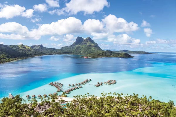 Over Under, Half Water-Half Land, Bungalows On The Beach, Moorea, Tahiti, French PolynesiaPanoramic Images