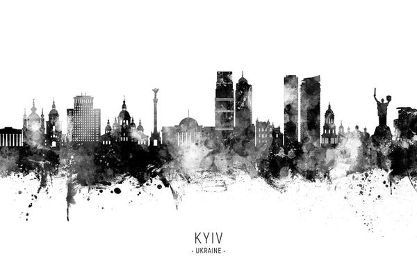 Kyiv Ukraine Skyline Name Bw
