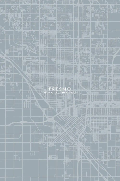 Fresno, California, City Map Grey Blue Style
