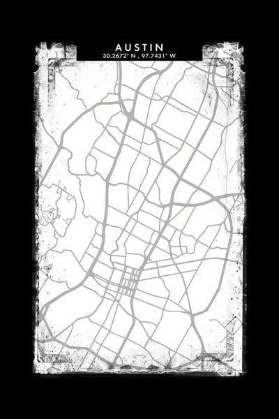 Austin City Map Black White Grey Style