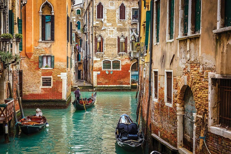 Gondolas Along Canal, Venice, Italy