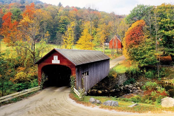 Covered Pedestrian Bridge Over Joes Brook, West Danville, Vermont, USAPanoramic Images