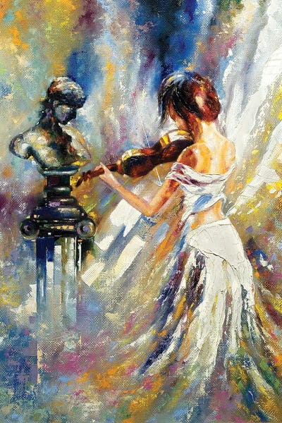 Playing Her Violin In Front Of A Bust