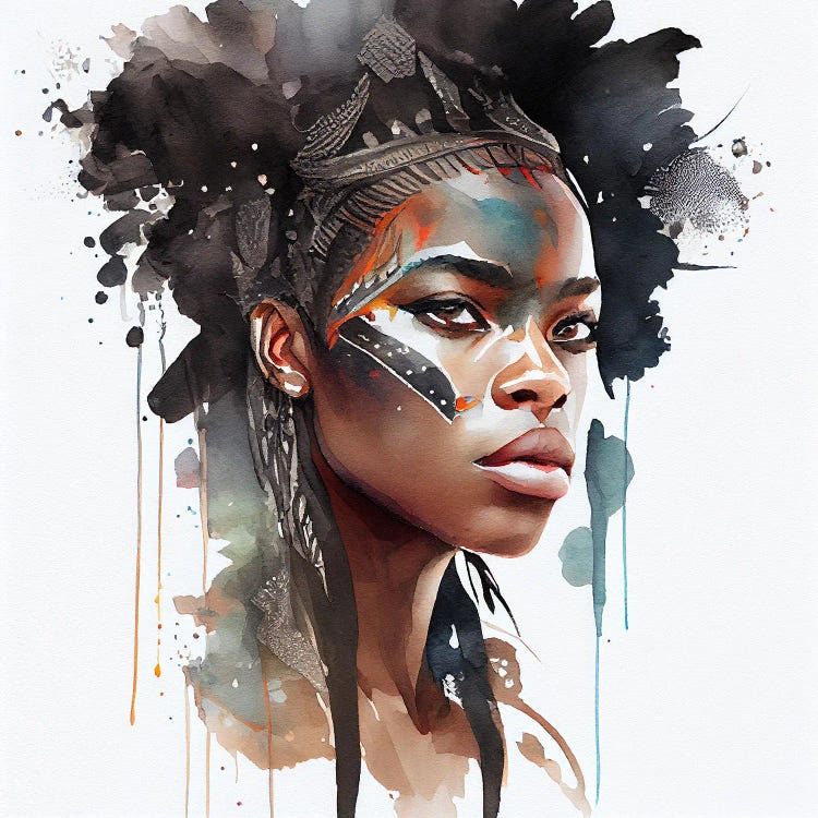 Watercolor African Warrior Woman VI