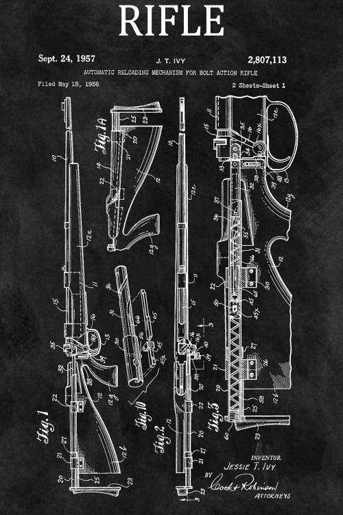 J.T. Ivy Automatic Reloading Mechanism For Bolt Action Rifle Patent Sketch (Chalkboard)