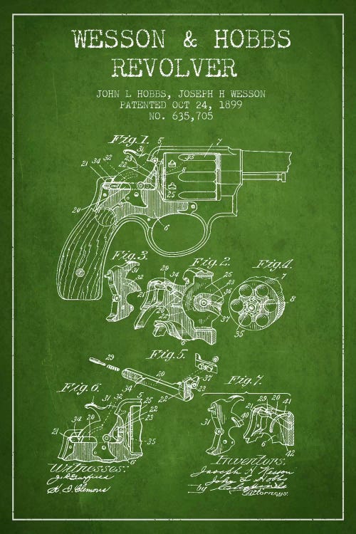 Wesson & Hobbs Revolver Green Patent Blueprint