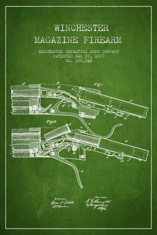 Winchester Fire Arm Green Patent Blueprint