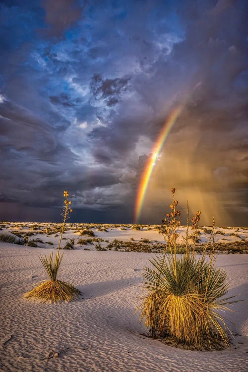 USA, New Mexico, White Sands National Park. Thunderstorm Rainbow Over Desert.Jaynes Gallery