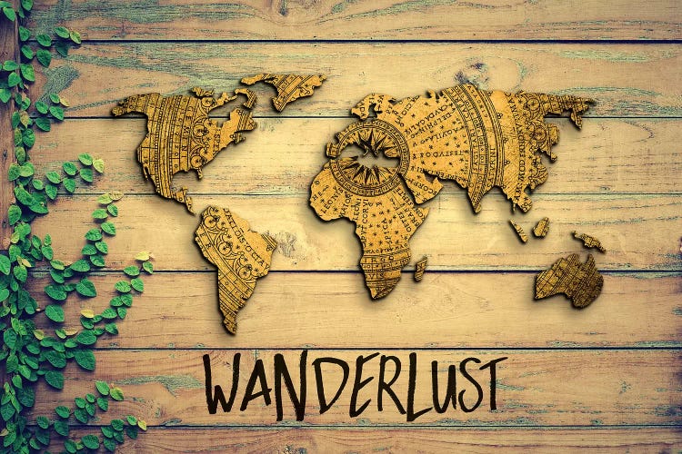 World Map Wanderlust Garden Wood Grain Vintage Compass