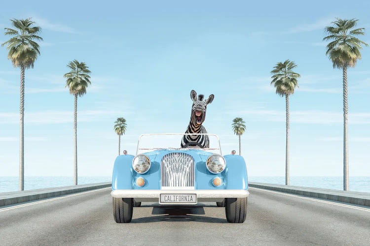 Blue Vintage Car With Zebra In California